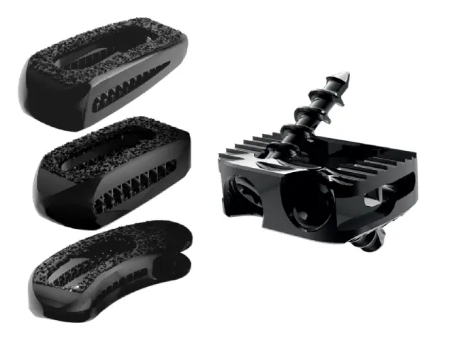 dostępne w wersjach wykonanych zarówno z biokompatybilnego materiału PEEK, jak i tytanu, w tym również w formie innowacyjnych klatek z tytanu porowatego, które dzięki swojej strukturze sprzyjają osteointegracji i przyspieszają proces zrostu kostnego.